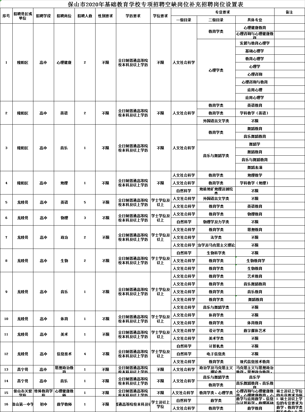 2020年保山市教师招聘信息:613专项补招